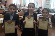 Ученики 3а класса Коклина З и Ахметов А награждены Грамотой за 2 место, Бавеян К за 3 место в школьном конкурсе осенних поделок и букетов