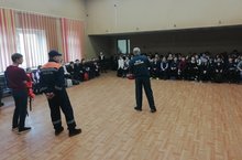 Сегодня сотрудники Министерства чрезвычайных ситуаций (МЧС) Бачурин С.В. и Ягофаров А.А провели для учащихся 5-6 классов лекции, посвященные вопросам безопасности. Школьникам напомнили о тех правилах, которые смогут уберечь жизнь от опасности в чрезвычайных ситуациях.