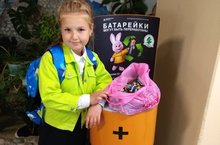 Ученица 2Б класса Большебородова София (кл.рук-ль: Сафина Р.З.) утилизировала в специальную урну 280 использованных батареек.
