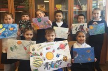 Ученики 1Б класса (кл.рук-ль: Сафина Р.З.) подготовили рисунки к конкурсу рисунков посвящённых Дню космонавтики