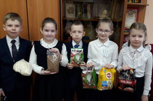 Учащиеся 1в класса ( кл.рук-ль: Андреева М В.) приняли участие в школьной акции" Окажи помощь приюту бездомных животных"( поселок Столбищи):Петряков С, Панарина С, Серебряков Д, Минькина У; Борисова С.