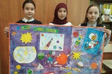 Ученики 4а класса подготовили плакат ко Дню Космонавтики!