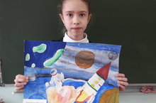 Ученица 2а класса Дерманская Виктория приняла участие в школьном конкурсе рисугков ко Дню Космонавтики