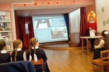 На занятии по внеклассному чтению в районной библиотеке 45 учащиеся 4Б класса приняли участие в викторине по книге сказов П.П.Бажова "Малахитовая шкатулка". Подготовку к викторине провела Мустафина Р.Р.