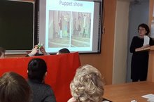 Сегодня, на очередном методсовете учителей нашей школы, выступили учителя английского языка. Анфеногентова О.М. и Идрисова А.Р. представили вниманию слушателей тему: "Театральные постановки как необходимый элемент в процессе изучения английского языка"". В целях повышения уровня владения языком учителя ведут активный поиск средств повышения эмоционального фона урока английского языка. Одним из путей решения этих проблем является использование театральных постановок.