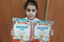 Поздравляем ученицу 1В класса Петрушину А .Она награждена Почетной грамотой и Дипломом за активное участие в олимпиадах.
