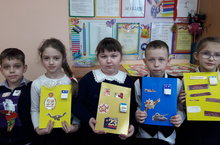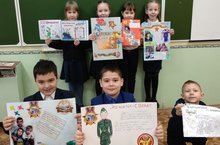 Учащиеся 1Г класса Ахмадалиев А, Аллахвердиев М, Кузнецов Д, Пьянова А, Закирова Э, Демеева П, Гайсина Р. ко дню Защитника Отечества приготовили работы к проекту "Мой папа в армии".