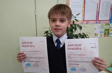 Ученик 4Б класса Семин Сергей награждён Дипломом I степени в Международной дистанционной олимпиаде по математике "Дважды два". Учитель - Мухина Н.В