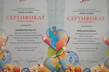 Ученицы 3А класса Абдулхаева Диана (уч. Жукова О.А.) и 4Б класса Шахбанова Амрина (уч. Мухина Н.В.) награждены сертификатами участников очной Республиканской олимпиады по математике "Найди ошибку".