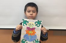 В рамках городской практической конференции посвященной творчеству Ф.Яруллина, ученик 1 Б класса Беляков Амир нарисовал рисунок по произведению Ф.Яруллина «Биюче бака»