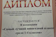 Учащиеся 1В класса награждены Дипломом победителя в номинации школьного конкурса " Самый лучший новогодний плакат"
