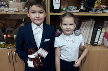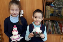 Учащиеся 1в класса Нугманов Б; Софронова В приняли участие в Городском конкурсе поделок" Новогодняя игрушка".