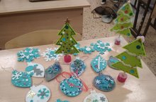 Во время групповой работы на уроке технологии учащиеся 4а класса выполнили своими руками украшения к Новому году.