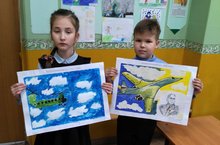 Учащиеся 2 в класса (кл. рук.: Валиуллина Э.А.) приняли участие в городском конкурсе рисунков "Казанский авиационный завод. Люди, судьбы" с целью популяризации российского авиастроя.