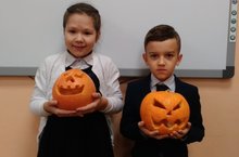 Ученики 3в класса (кл.рук.: Гайфуллина ГИ) Калимуллина Аделина и Ахметов Шамиль приняли участие в конкурсе тыкв к "Halloween". Молодцы!