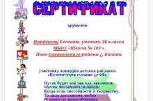 Ученики 3б класса Шакирзянова Алия, Найденов Евгений,Волкова Дарья награждены сертификатами участников конкурса детского рисунка "Конституция глазами детей", проводимого Конституционным судом Республики Татарстан. (Кл.рук. Мухина Н.В.)
