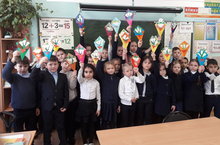 Самый радостный для нас!Ученики 1а класса(кл.рук.Фатыхова Л.И.) приготовили к 8 Марта для мам подарки- букеты цветов! -