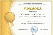 Поздравляем Киямову Алию Исламовну с Победой в данном конкурсе ! Она заняла 3 место в районе ! -