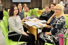 Учителя начальных классов Гайнуллина А.М., Гисматуллина Г.Ф., Валиуллина Э.А., Зарипова И.Ш., Мухина Н.В. на стратегической сессии по развитию функциональной грамотности младших школьников на основе дифференцированного подхода.
