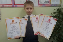 Поздравляем ученика 3б класса Найдёнова Евгения с награждением Дипломом II степени во Всероссийской олимпиаде по русскому языку (3 место в РТ), Дипломом II степени во Всероссийской олимпиаде по литературному чтению, Дипломом I степени во Всероссийской олимпиаде по английскому языку (FGOSTEST.RU). Желаем дальнейших успехов!