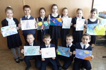 Учащиеся 2б класса подготовили рисунки к выставке, посвященной Дню космонавтики.