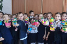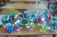 Ученики 4А класса (кл.рук.Фатыхова Л.И.) на уроке технологии изготовили мамам подарки букеты цветов. -