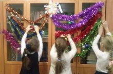 Учащиеся 4 в класса в рамках акции "Новогодняя шкатулка" принесли новогодние украшения для класса