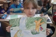 Ученица 3 в класса Олудина К(кл. рук-ль: Андреева М. В.) приняла участие в Республиканском конкурсе творческих работ в номинации рисунок "Герои сказок Габдуллы Тукая"
