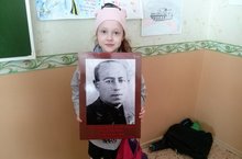 Ученица 1 а класса Власова Софья совместно с родителями приготовила портрет прадедушки -участника Великой Отечественной войны для шествия на параде 9 мая.