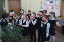 Учащиеся 1б класса на уроках литературного чтения не только учатся выразительно читать, пересказывать и отвечать на вопросы, но и инсценировать произведения.