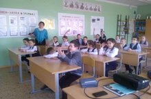 В день космонавтики учитель информатики Ясавиев Д.Р. провел открытый урок для 4 х классов на тему "Космос".