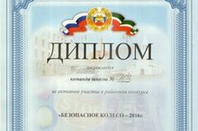 2 марта 2016 года отряд ЮИД (к сожалению не в полном составе): Хузина Азалия (5Б), Хуснутдинова Ралина (5Б), Сабиров Рафаэль (5Б), Симоненко Николай (5Б) под руководством Мухиной Н.В. принял участие в конкурсе Безопасное колесо-2016. -
