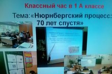 В 1 А классе(кл. рук-ль: Гайнуллина А. М.) прошёл классный час на тему: «Нюрнбергский процесс: 70 лет спустя». Маленькие первоклассники впервые услышали, что это такое. Они очень внимательно слушали учителя и поняли, что Нюрнбергский процесс - международный судебный процесс над группой главных нацистских военных преступников. Он проходил в Международном военном трибунале в Нюрнберге (Германия). ...