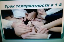 16 ноября отмечается Международный день толерантности. В связи с этим в 1 А классе (кл рук. Гайнуллина А. М.) прошёл урок толерантности, где учащиеся ознакомились с понятием «толерантность», его толкованием. Ребята договорились, что будут терпимее друг другу, относиться к каждому человеку с уважением.