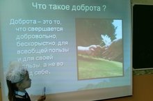 В 1А классе (кл. рук. Гайнуллина А. М.) прошёл урок доброты, целью которого было на примерах, доступных детскому восприятию, объяснить, какой смысл люди вкладывают в понятия «добро» и «зло».