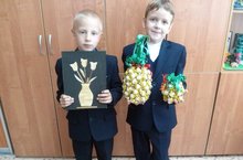 В преддверии профессионального праздника Дня учителя ученики 1 А класса (кл. рук. Гайнуллина А. М.) вместе со своими родителями изготовили поделки. Молодцы!