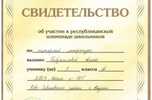 Администрация школы выражает благодарность учащейся 9А класса – Габзялиловой Алине, принявшей участие в заключительном этапе Республиканской олимпиады по татарской литературе и её учителю татарского языка и литературы – Кабировой Зулейхе Мухамматовне! Так держать!