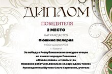 Любой конкурс- это очень напряжённо, трудно, но и очень интересно. Ученица 9б класса Оюшина Валерия стала победителем в республиканском конкурсе чтецов " Живое слово"/" Җанлы сүз". Учитель: Шутова Ольга Сергеевна, учитель русского языка и литературы. Пусть эта победа станет одной из многих, которые еще ждут вас впереди!