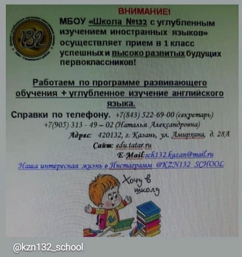 МБОУ «Средняя общеобразовательная школа №132 с углубленным изучением иностранных языков» Ново-Савиновского района г. Казани/ Казан шәһәре Яңа Савин районының “Инглиз теле тирәнтен өйрәнелә торган 132нче урта гомуми белем мәктәбе” гомуми белем муниципаль бюджет учреждениесе