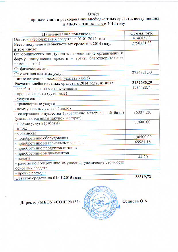Отчет о поступлении и расходовании внебюджетных средств за 2014 год