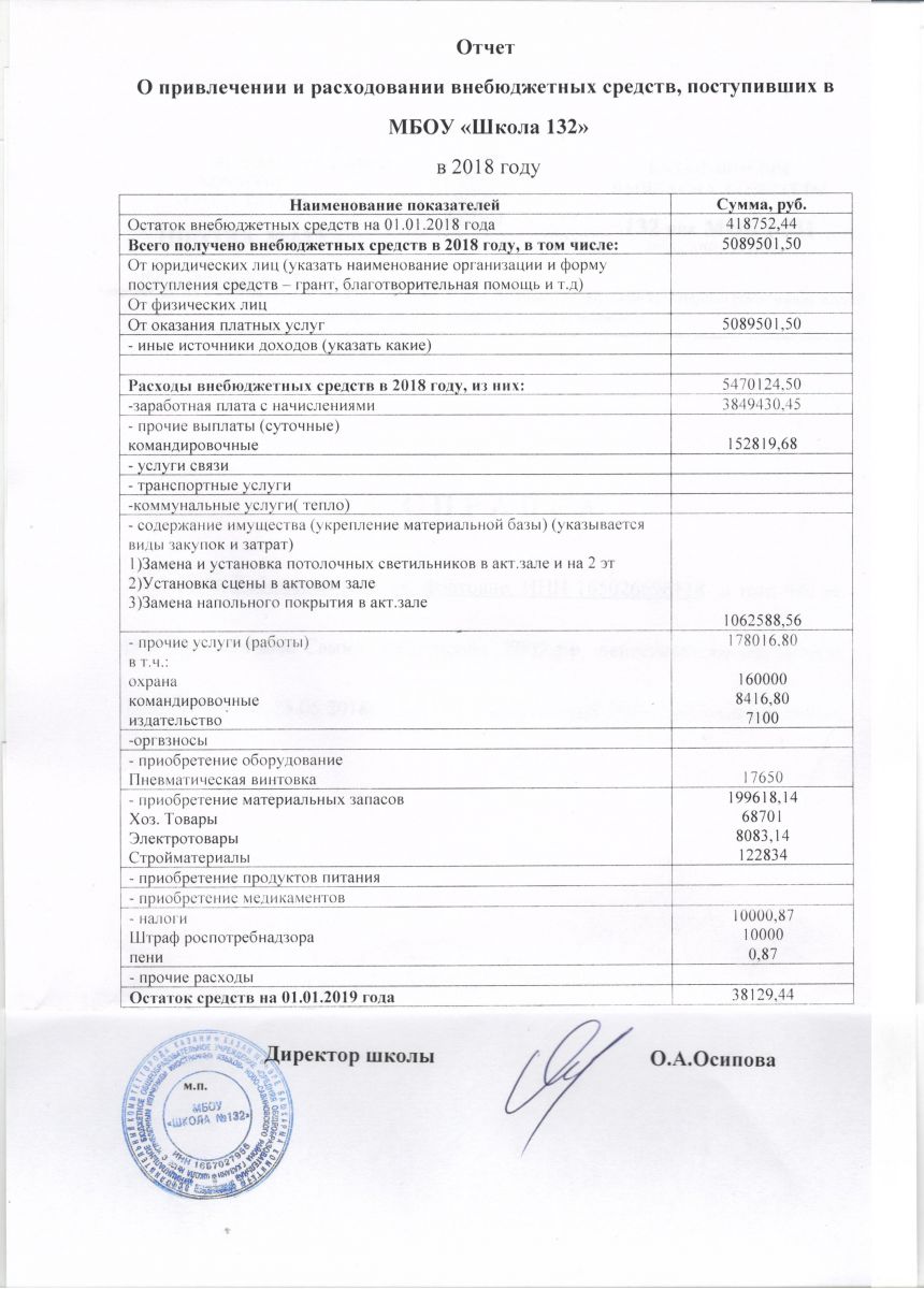 Отчет о поступлении и расходовании внебюджетных средств за 2018 год