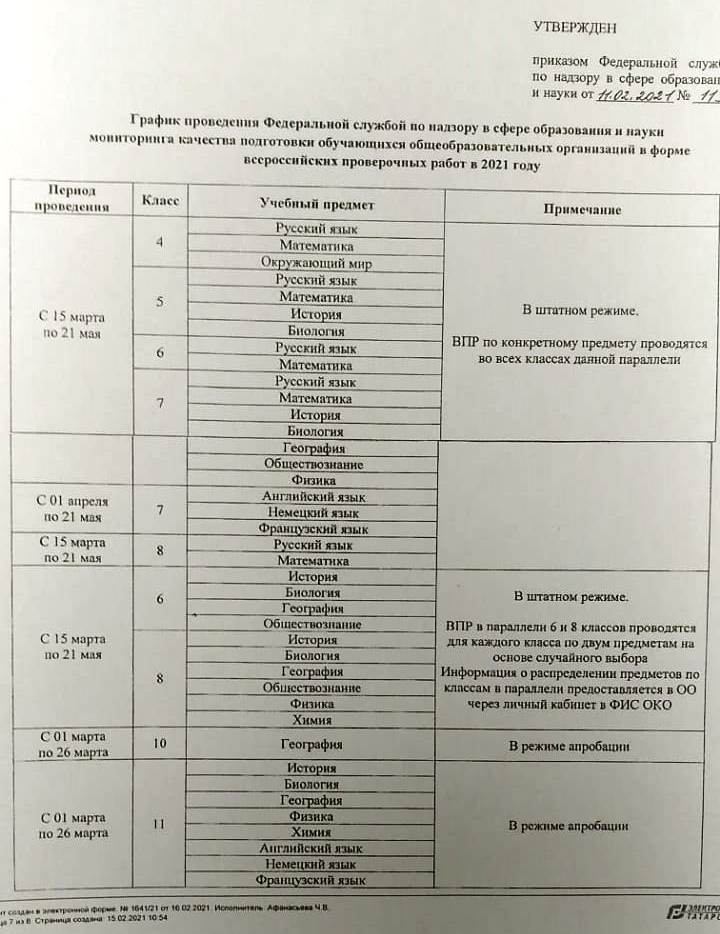 График проведения ВПР в 2021 году