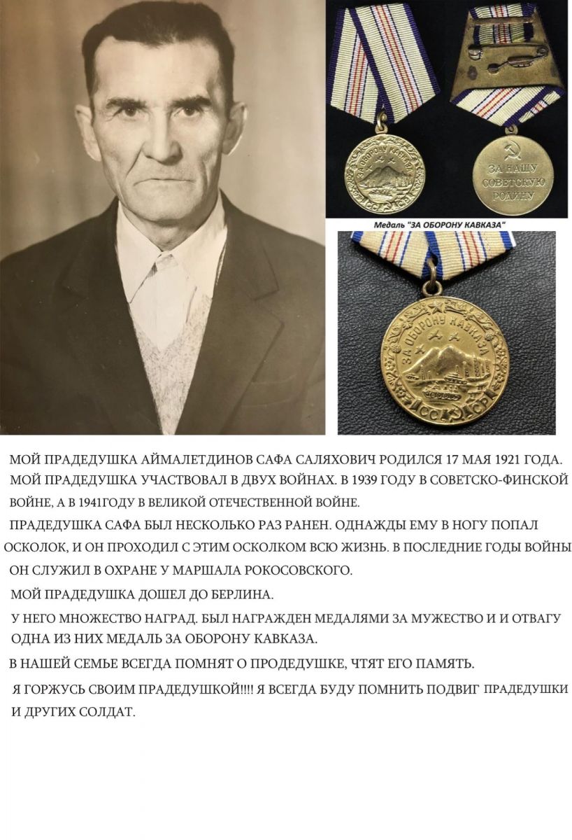 Сибгатуллина Амелия 5"В" прадед Тахавов Сагдат Габдурахманович