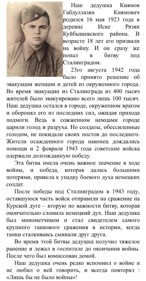 Ленская Влада 6"В" прадед Ямгутдинов Назмутдин Ямгутдинович