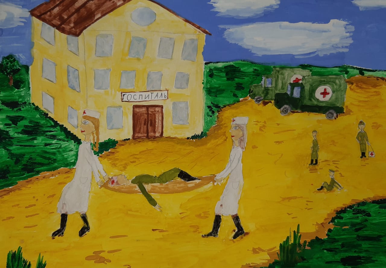 Саша Пахатнова 2Б класс рисунок "В госпитале"