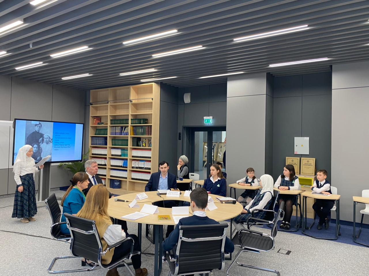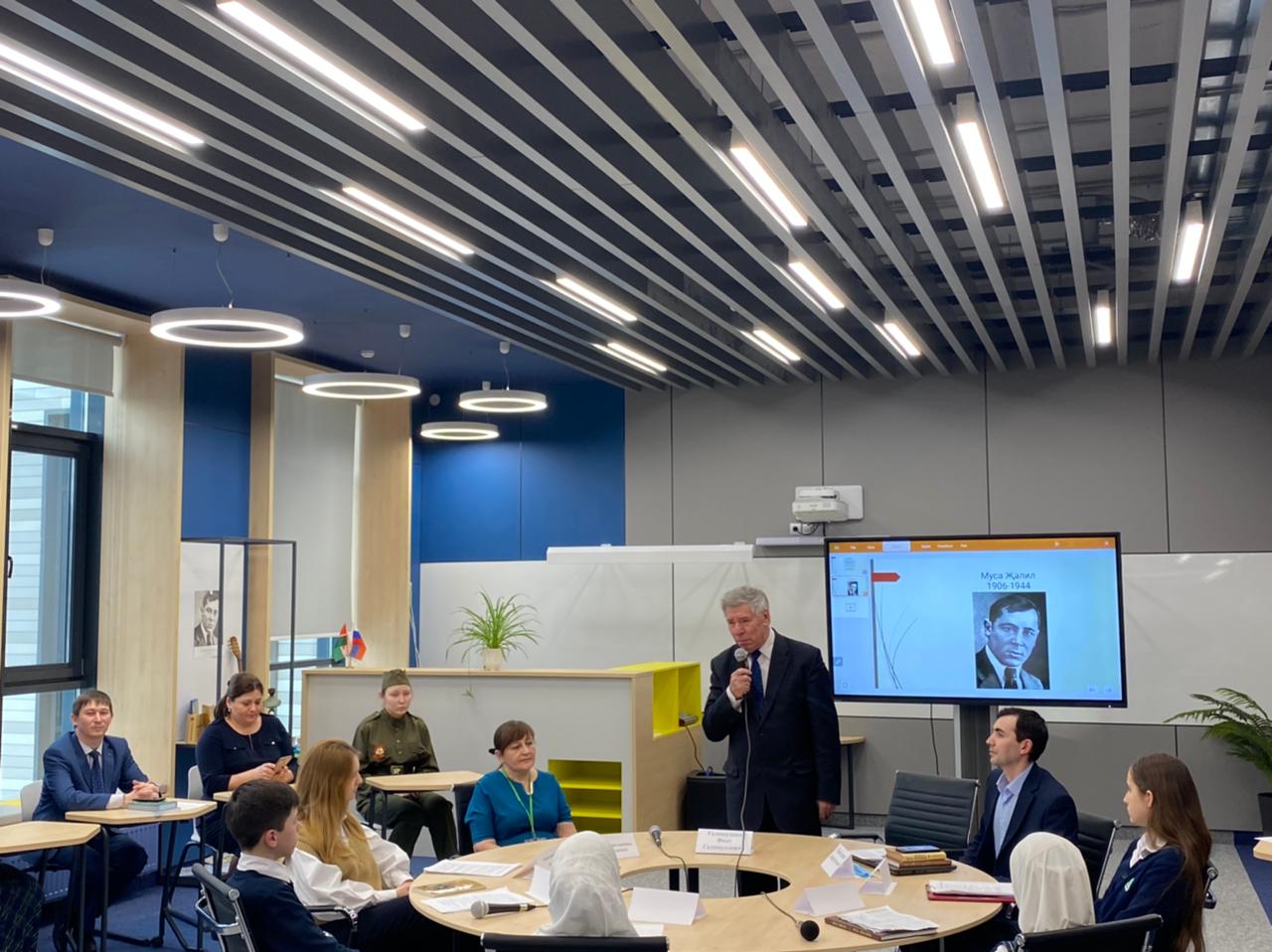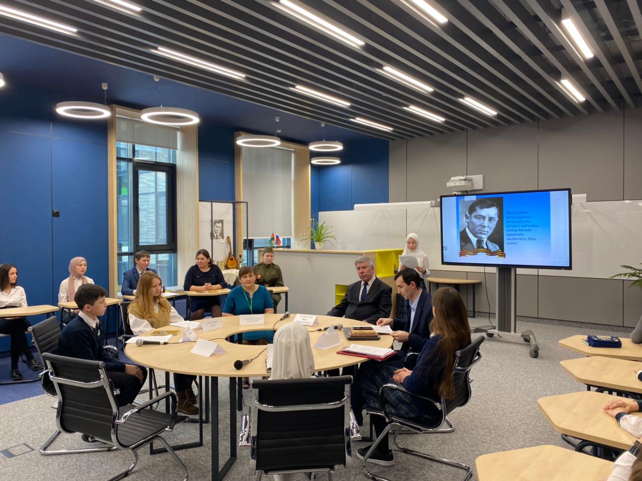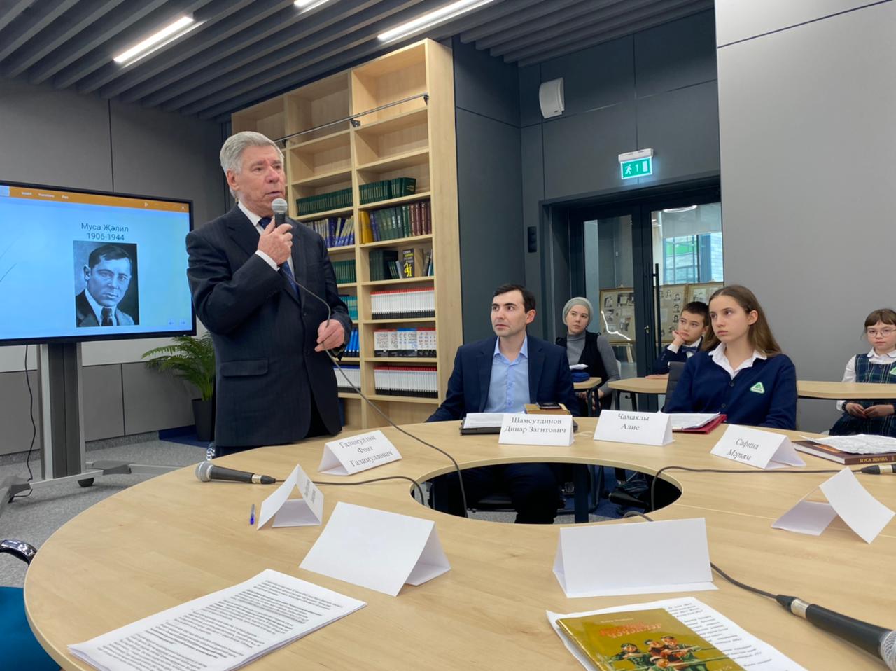 Today, a round table was held in honor of the 115th anniversary of the birth of the Hero of the Soviet Union, poet Musa Jalil. The guest of honor of the event was Foat Galimullovich Galimullin. The event was moderated by Dinar Zagitovich Shamsutdinov. Students made presentations and read the poet's poems in Tatar, Russian, Turkish and English.