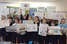 Конкурс плакатов в защиту бездомных животных, в рамках проекта "Лапа дружбы", провели сегодня учащиеся 3 Б класса совместно со своим классным руководителем Лазаревой О.Ю. Обсудили проблему, предложили пути решения проблемы, повторили правила безопасности при встрече с бездомными животными, наградили победителей