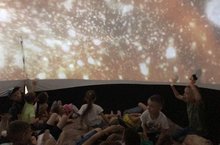 Сегодня к участникам лагерной смены приехал передвижной планетарий, где в доступной форме детям было рассказано о планетах солнечной системы, о первых покорителях космоса. Также была возможность увидеть солнце очень близко, галактику, красивейшие явления космоса, туманности, звездные накопления. Дети могли совершить путешествие с кометой, а еще узнали, как появился единственный спутник Земли – Луна.