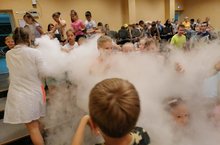 Прекрасный день, чтобы ощутить себя эксперементаторами. Новое познавательное научное шоу с забавными экспериментами, химическими опытами и невероятными изобретениями провели для ребят сегодня гости лагеря. Увлекательная и зрелищная программа пришлась по душе не только пытливым и любознательным детям, но и взрослым, которые с удовольствием принимали участие в происходящем.
