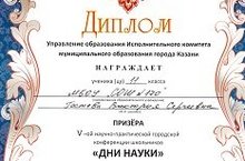 Поздравляем ученицу 11 класса Г. Викторию, ставшую призером V-ой научно-практической конференции школьников "Дни Науки"